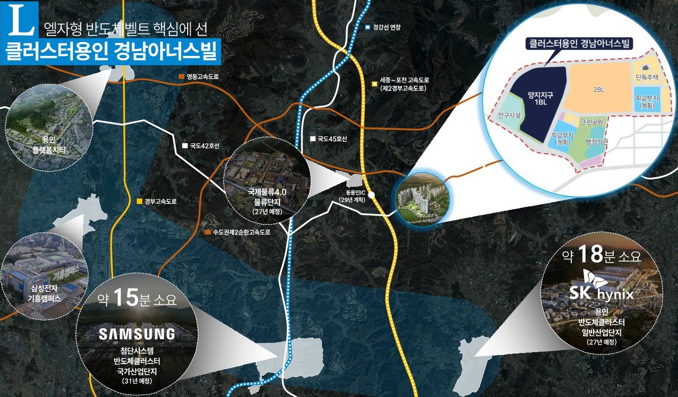 특히 삼성·SK 반도체 클러스터와 차량 15분 내외 거리에 위치한 ‘클러스터용인 경남아너스빌’은