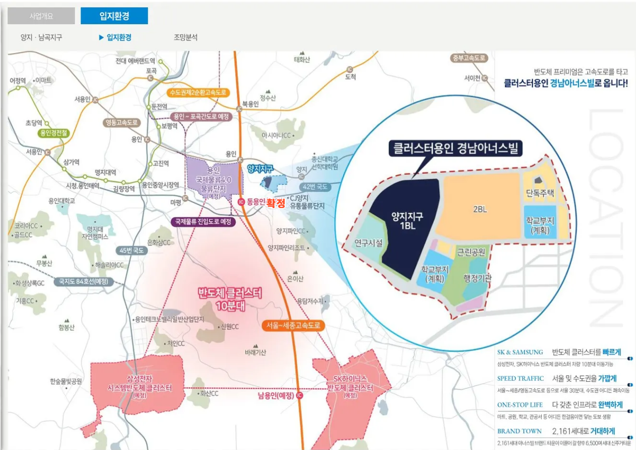 이러한 대규모 산업단지와 직접 연결되는 주거단지가 바로 ‘클러스터용인 경남아너스빌’입니다.